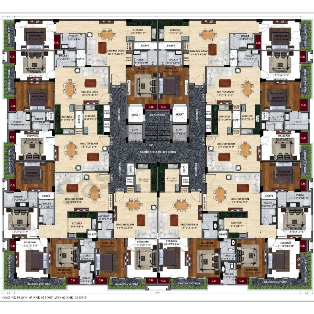 This gated community features low-rise buildings with three sides open. The internal road within the society spans 22 feet in width, while the main road leading to the project boasts a generous width of 40 feet.